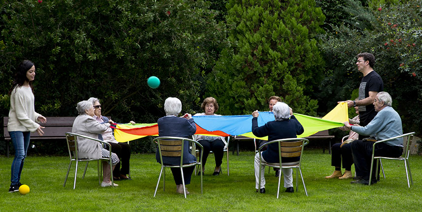 Residentes realizando actividad en el jardín